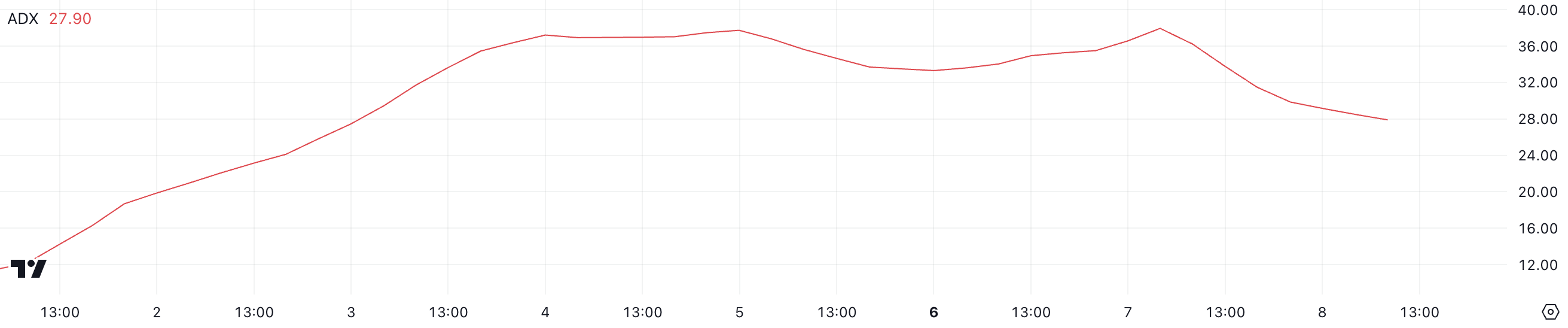 Алайда, ADX ағымдағы төмендеу үрдісінің күші әлсіреуі мүмкін екенін көрсетеді, бұл кері айналу үшін үміт береді.