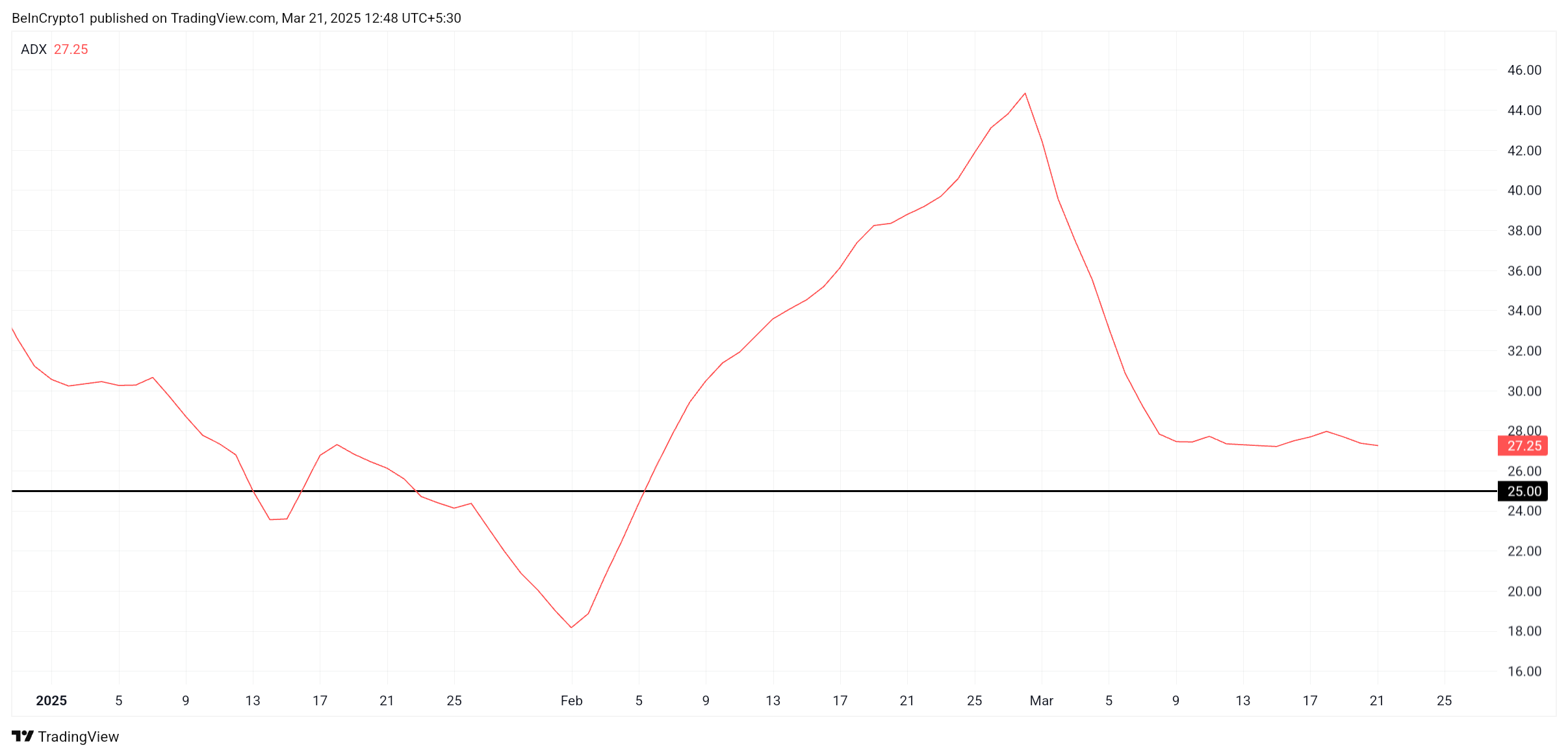 Трейдерлер қалпына келтіруге бәс тігуде, бірақ ADX көрсеткен төмендеу трендінің күші алаңдаушылық тудырады. Импульс өзгермейінше немесе негізгі нарық жағдайлары өзгермейінше, бағаның қашан тұрақтанатыны немесе бұқа импульсіне ауысатыны белгісіз болып қалады.