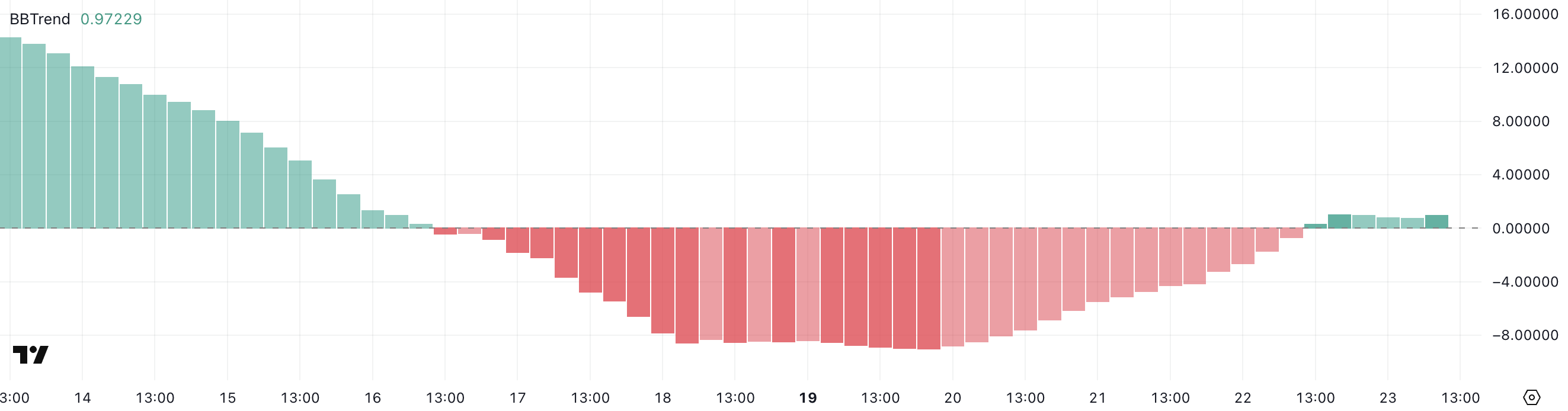 BBTrend нөлге жақын болғанда, бұл шешімсіздік немесе консолидацияны білдіреді, ал 1-ден жоғары тұрақты мәндер әдетте бұқа қозғалысының күшейіп жатқанын растау ретінде қарастырылады.