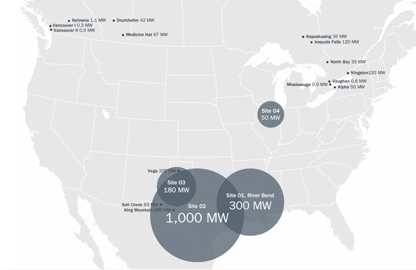 ERCOT желісіне қосылған Техастағы екі нысан 1 180 МВт қосады. MISO-ға қосылған Луизианадағы нысан 300 МВт қосады, ал Иллинойс PJM-ге қосылған 50 МВт жобаны көреді. Компания бұл активтерді «айрықша құқықтан» «дамуға» қайта жіктеді, яғни жер және электр келісімшарттары қамтамасыз етілген және белсенді жобалау жұмыстары жүргізілуде.