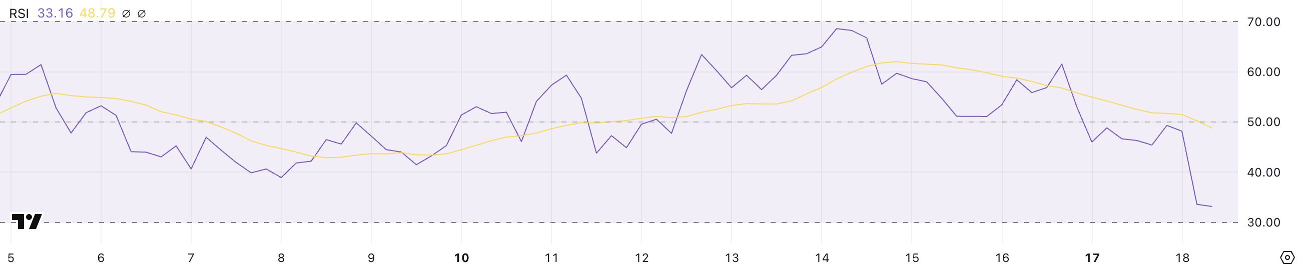 HYPE-тің RSI көрсеткіші де айтарлықтай төмендеді, төрт күн ішінде 68-ден 33,1-ге дейін түсіп, бұқа импульсінің тез жоғалуын көрсетеді. Қазіргі көрсеткіш 30-дан жоғары болса да, бұл сатушылардың бақылауда екенін көрсетеді.