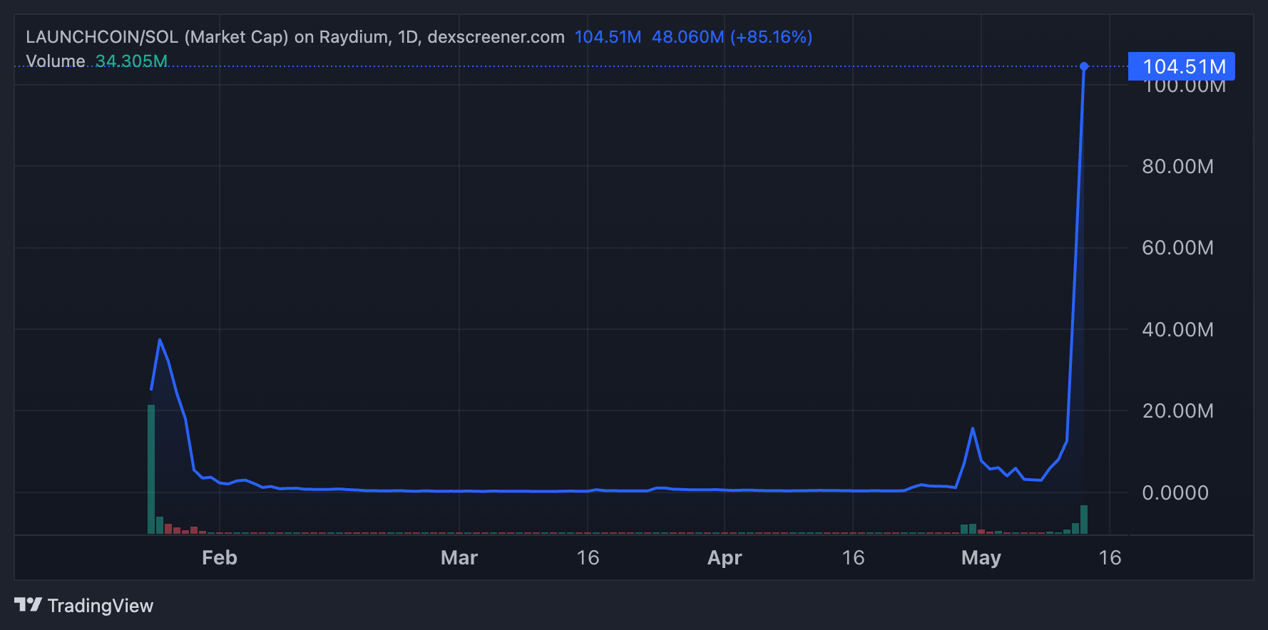 Сауда белсенділігі тұрғысынан, LAUNCHCOIN-нің сауда көлемі 44,5 млн долларға жетіп, 63 635 транзакция жасалды. Бұл инвесторлар арасындағы күшті сұранысты көрсетеді.