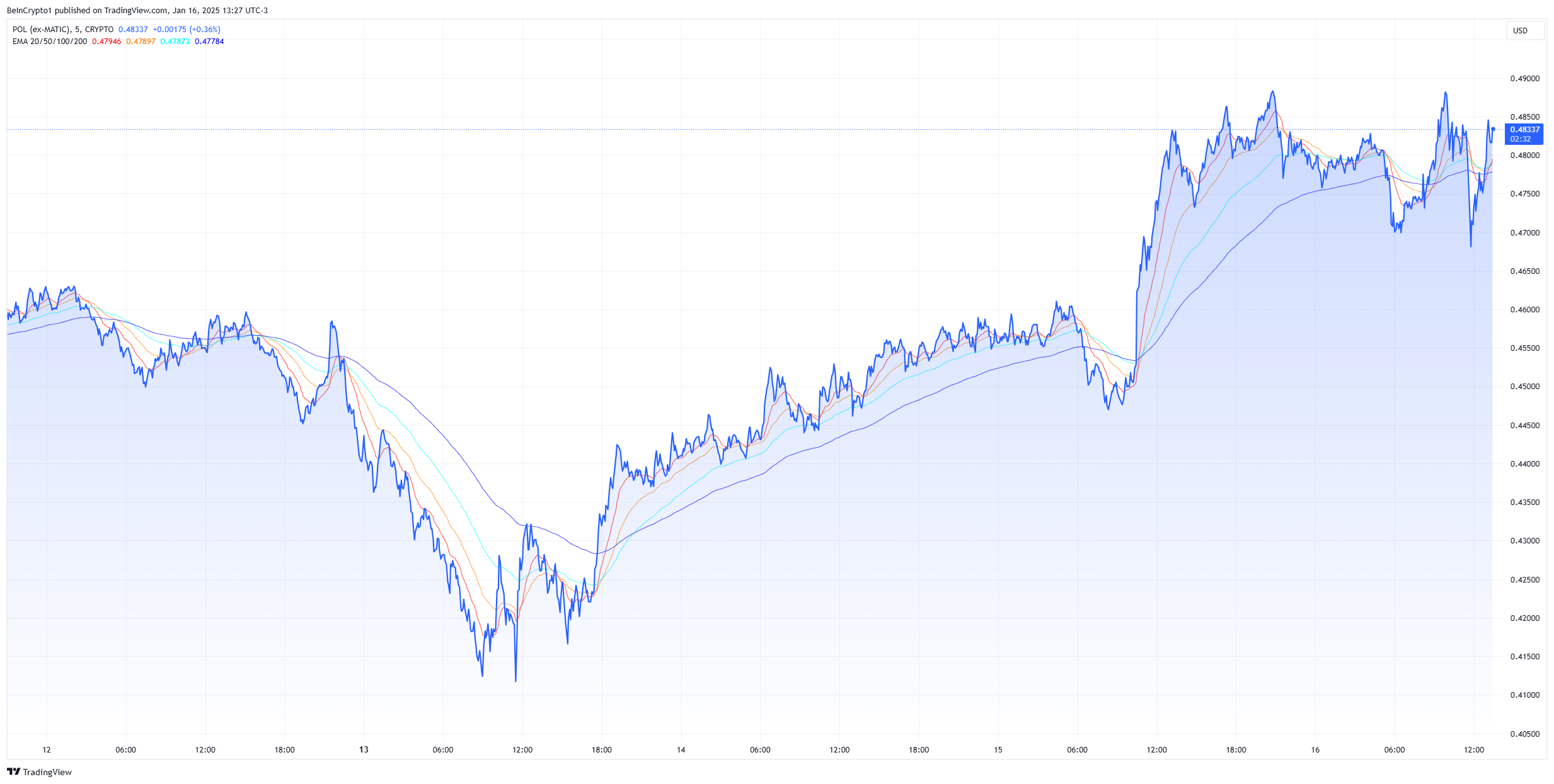 Бұл хабарландыру Polygon-ның жергілікті токенін көтерген сияқты. POL соңғы 24 сағат ішінде шамамен 7% өсті және баспасөз уақытында 0,478 доллар бағасымен сатылды.