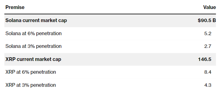 XRP және Solana әлі ETF-терге ие емес, бірақ фирма мақұлдау болған кезде үлкен потенциалды болжайды.