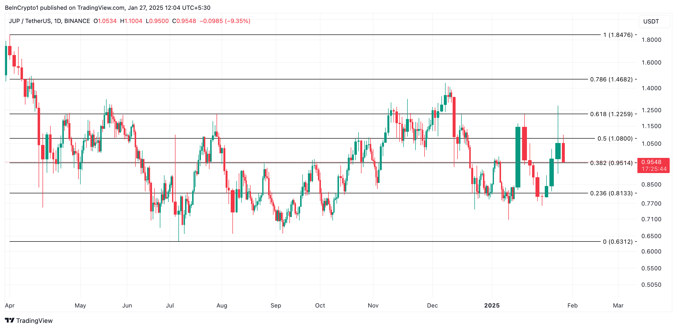 Баспасөз уақытында JUP 0,95 доллар бағасымен саудаланады. Егер сатып алу қысымы сақталса, токеннің бағасы ағымдағы өсімін 1,08 долларға дейін ұзарта алады. Егер бычий көзқарас күшейсе, JUP 1,22 долларға дейін жетуі мүмкін.