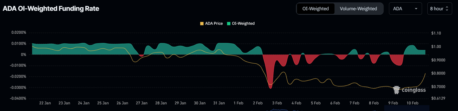 Cardano макро импульсі де жақсару белгілерін көрсетті. Соңғы екі апта бойы ауытқып тұрған қаржыландыру мөлшерлемесі трейдерлер арасындағы белгісіздіктің белгісі болды.