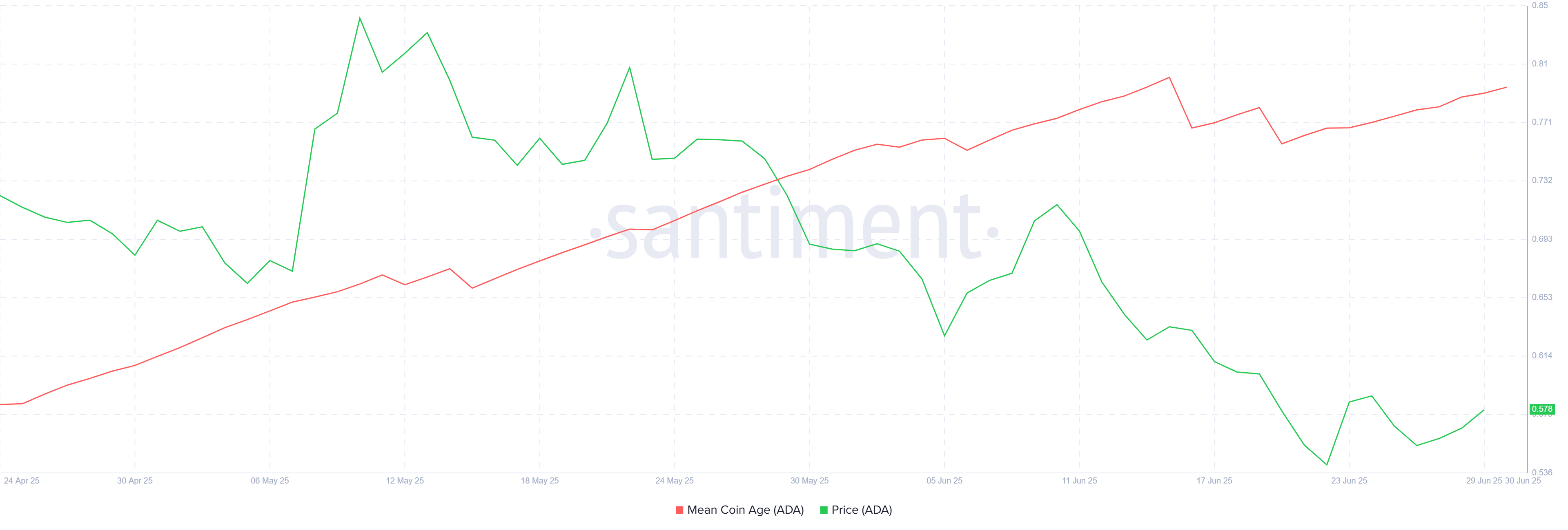 Орташа монета жасы (MCA) деректері LTHs қысқа мерзімді сатудан кейін HODLing-ке қайта оралғанын көрсетеді. Жинақтауға қарай бұл өзгеріс соңғы айларда байқалған жалпы теріс импульсті өзгерту үшін маңызды. LTHs Cardano-ның айналымдағы ұсынысының едәуір бөлігін бақылайды, және олардың сату емес, ұстау туралы шешімі бағаға айтарлықтай әсер етуі мүмкін.