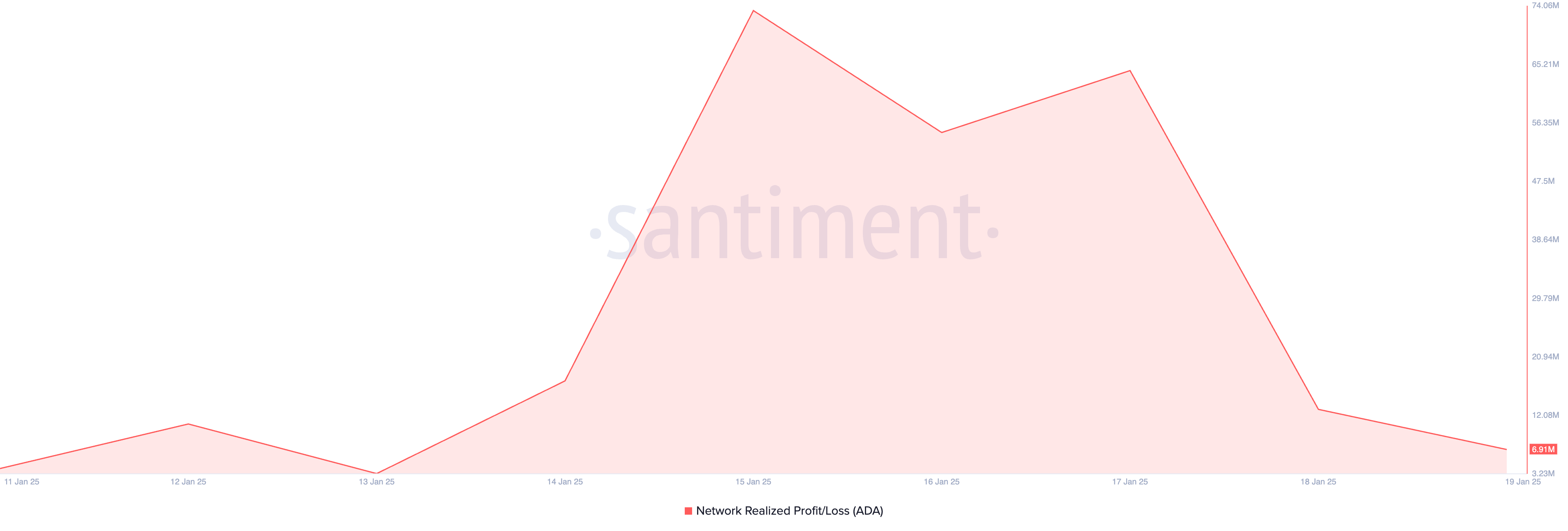 Соңғы бірнеше күнде Cardano бағасының өсуі оның иелері арасында жүзеге асырылған пайданы арттырды. Контекст үшін, жүзеге асырылған пайда 15 қаңтарда ADA бағасы 1,15 долларға көтерілген кезде апталық ең жоғары 73,33 млн долларға жетті.