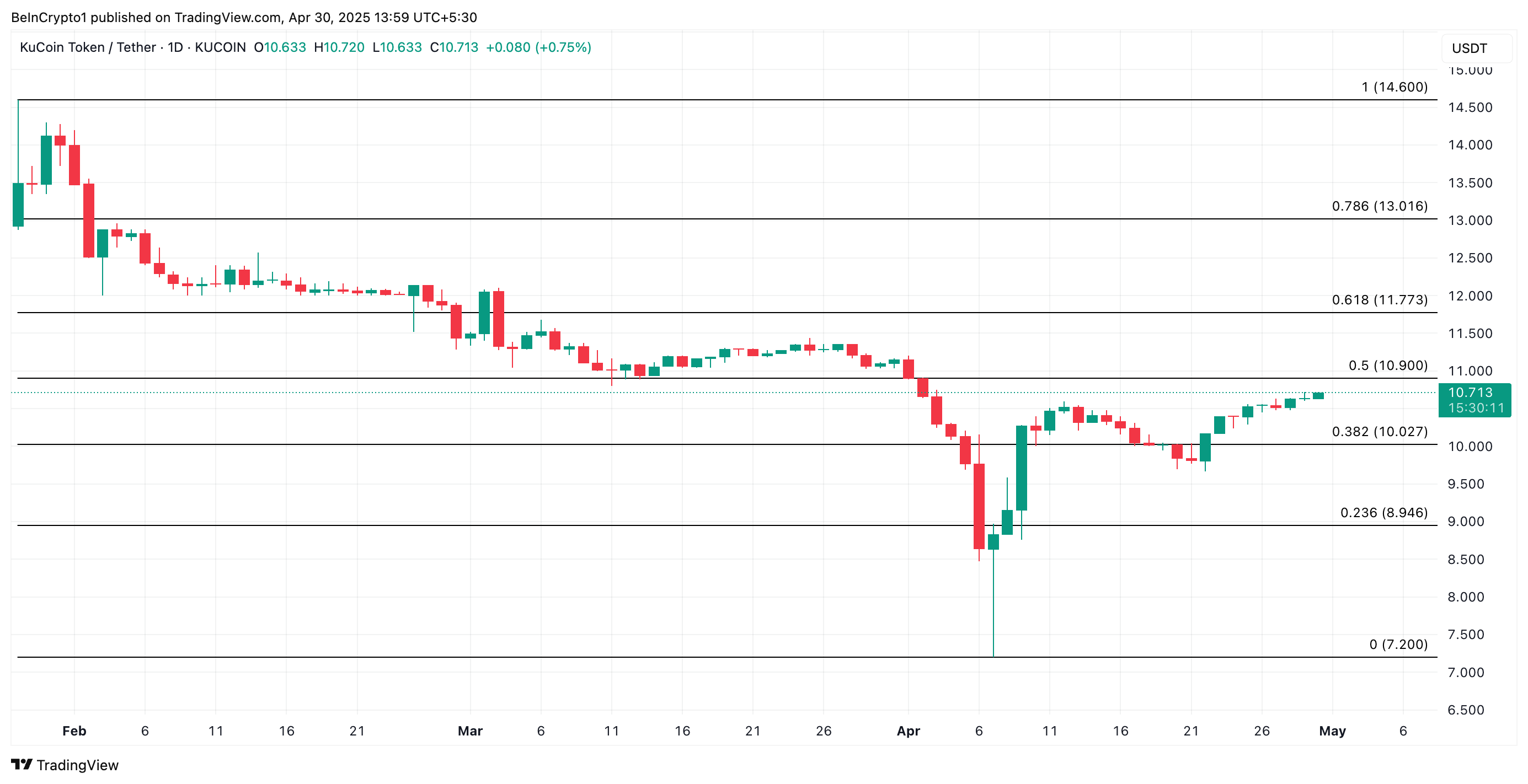 KCS қазіргі уақытта 10,71 доллар деңгейінде саудаланып, 10,90 доллар деңгейінде қалыптасқан кедергінің астында тұр. Егер альткоинге деген сұраныс өсіп, бұл баға кедергісін қолдау деңгейіне айналдырса, ол KCS-ті 3 наурызда соңғы рет жеткен 11,77 долларға дейін көтеруі мүмкін.