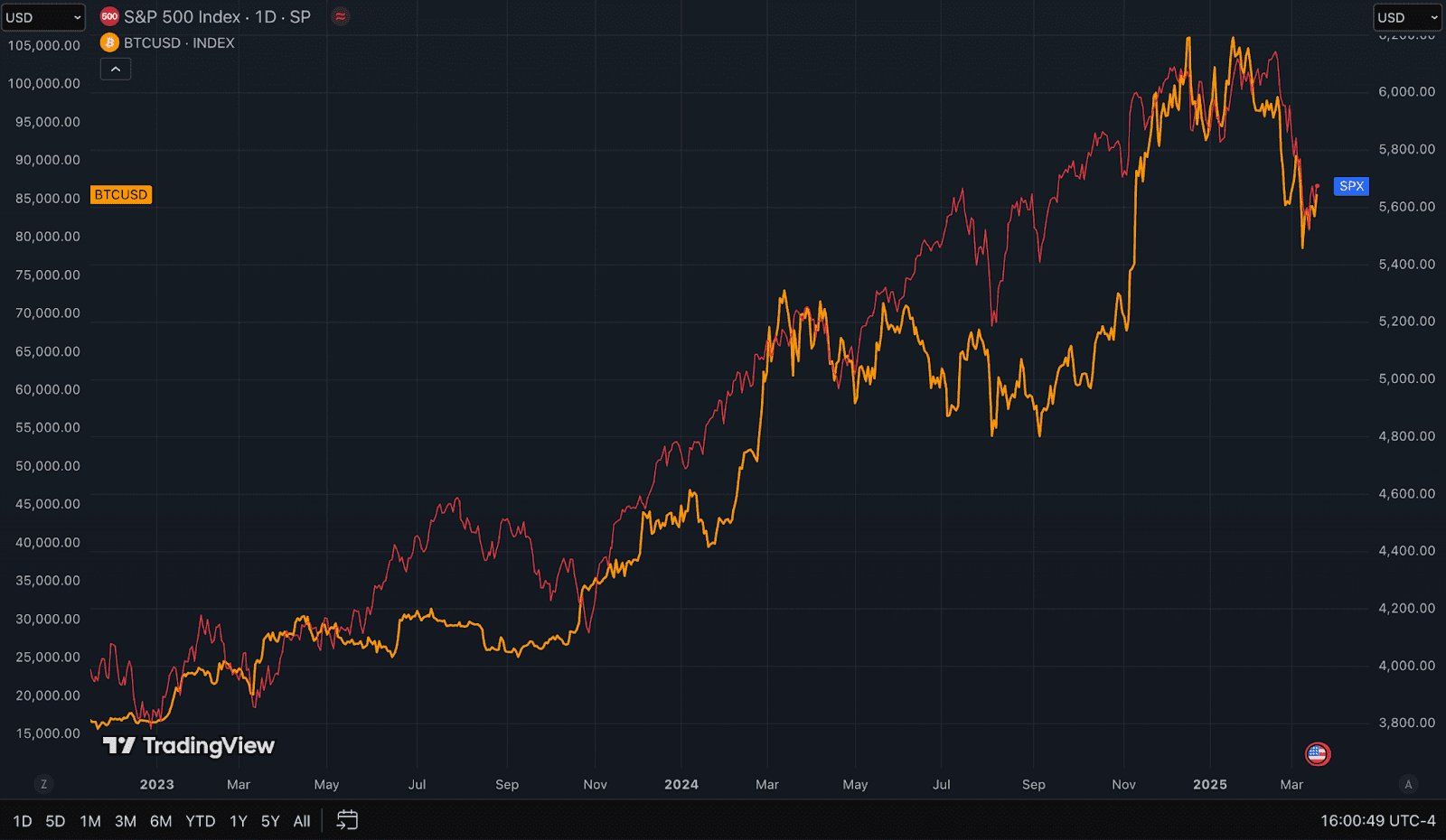 Енді, сұрақ, неге бұл Bitcoin-ге әсер етеді? S&P 500-мен тығыз байланысын ескере отырып, соңғысының түзетілуі BTC үшін қиындық тудыруы мүмкін. Сарапшы Ларк Дэвис Bitcoin мен S&P 500 2023 жылдан бері тығыз байланысты екенін атап өтті.