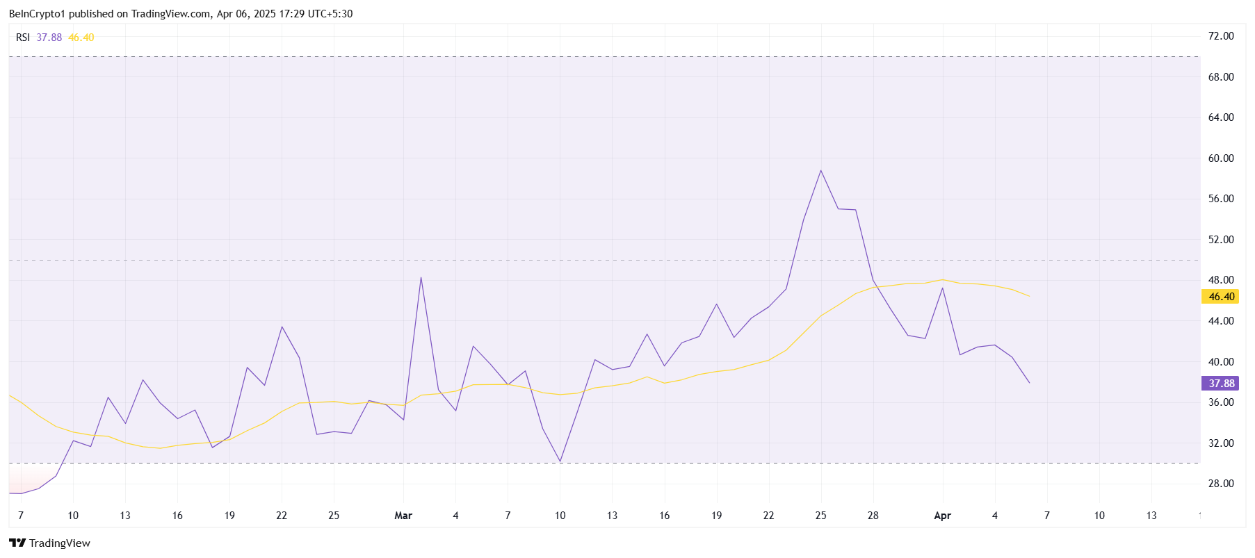 Төмен сатылым белсенділігіне қарамастан, техникалық индикаторлар әлсіздікті көрсетуді жалғастыруда. Салыстырмалы күш индексі (RSI) қысқа қалпына келтіру әрекетінен кейін аю аймағына қайта түсті. Бұл сатып алу қысымының жоқтығын және инвесторлар арасындағы белгісіздікті көрсетеді.