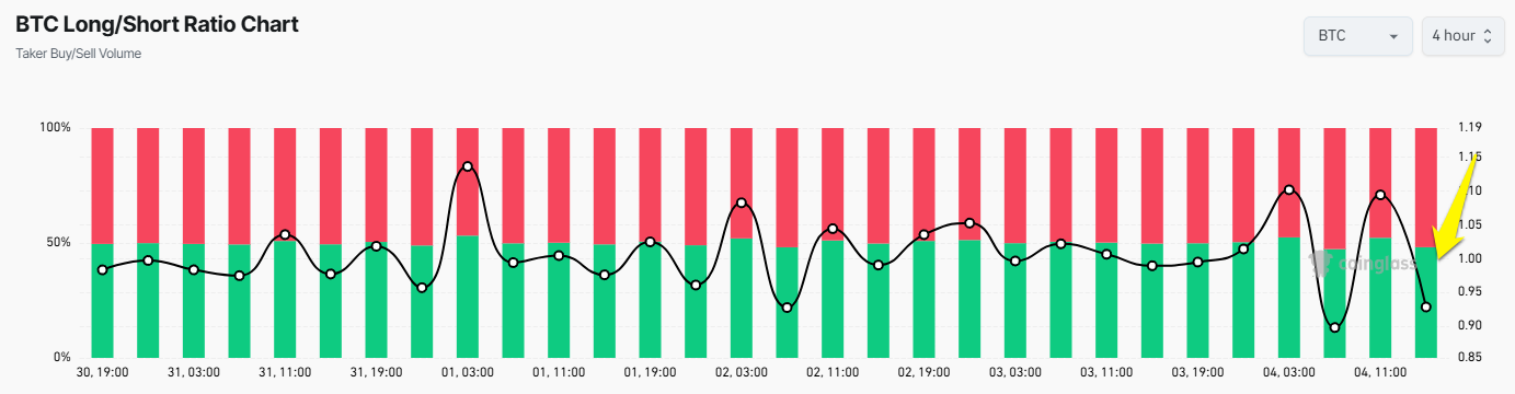 Сол уақытта, жаңалықтан кейін Bitcoin-ның ұзақ/қысқа қатынасы 1-ден төмен түсіп, қысқа сатылымға деген көңіл-күйдің өскенін көрсетіп, нарықта басымдылық орнатты.