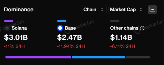 Алдыңғы қатардағы 15 монетаның тек екеуі Solana және Base-ден тыс: BNB-де жұмыс істейтін ChainGPT (CGPT), қазіргі уақытта нарықтық капитализациясы 118 млн долларды құрайды, және Ethereum-де жұмыс істейтін TURBO, нарықтық капитализациясы 265 млн долларды құрайды.