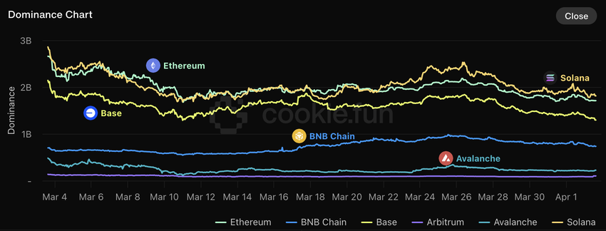 Base және BNB белсенді ойыншылар болып қала береді, бірақ олардың саны наурыз айының басынан бері тұрақты түрде төмендеді. Бұл үрдіс жасаушылар мен инвесторлардың назарын Ethereum негізіндегі жобаларға аударғанын көрсетеді.