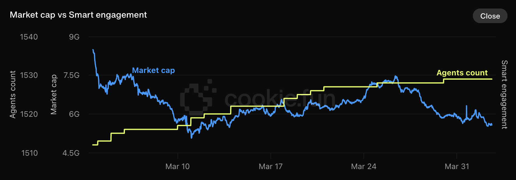 Бағалар төмендегеніне қарамастан, агенттер саны наурыз айының басынан бері тұрақты түрде өсіп келеді — бұл Binance негізін қалаушы CZ жақында ЖИ агенттерінің тек 0,05%-ы шынымен токендерге мұқтаж екенін мәлімдегеніне қарамастан орын алып отыр.