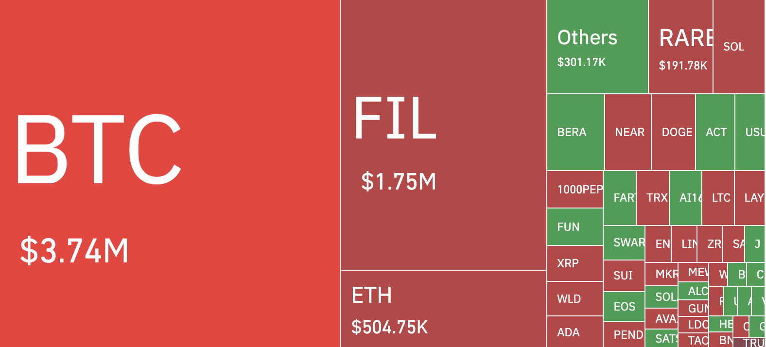 Бұл турбуленттілік крипто нарығына да әсер етті, мұнда жаппай өтімділіктер левереджделген позицияларды жойды. Соңғы 24 сағат ішінде 110 543 трейдер жойылды, жалпы шығындар 242,12 млн долларға жетті.