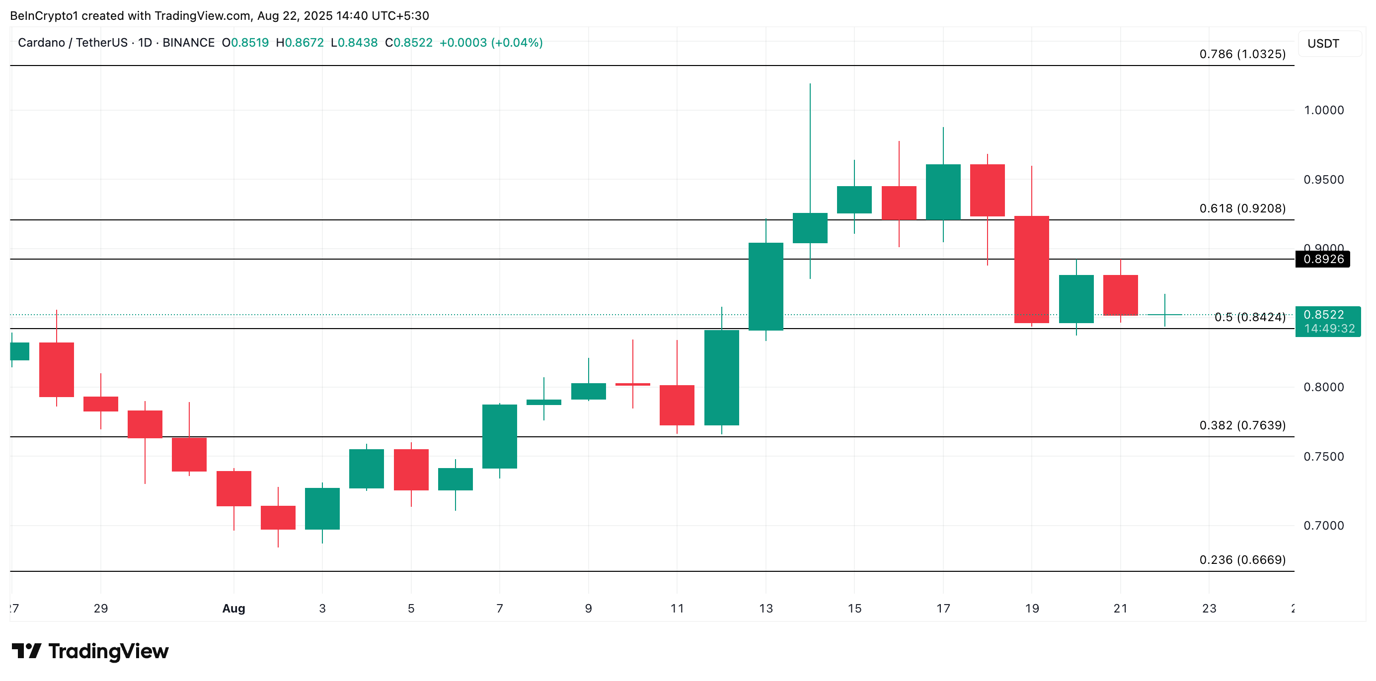 Кеңірек нарықтың бәсең көрсеткіші соңғы күндері ADA-ны диапазонда ұстағанымен, егер киттердің жинақтауы өссе, оның бағасы 0,89 долларға қарсыласуды сынап, одан жоғары көтерілуге тырысуы мүмкін.