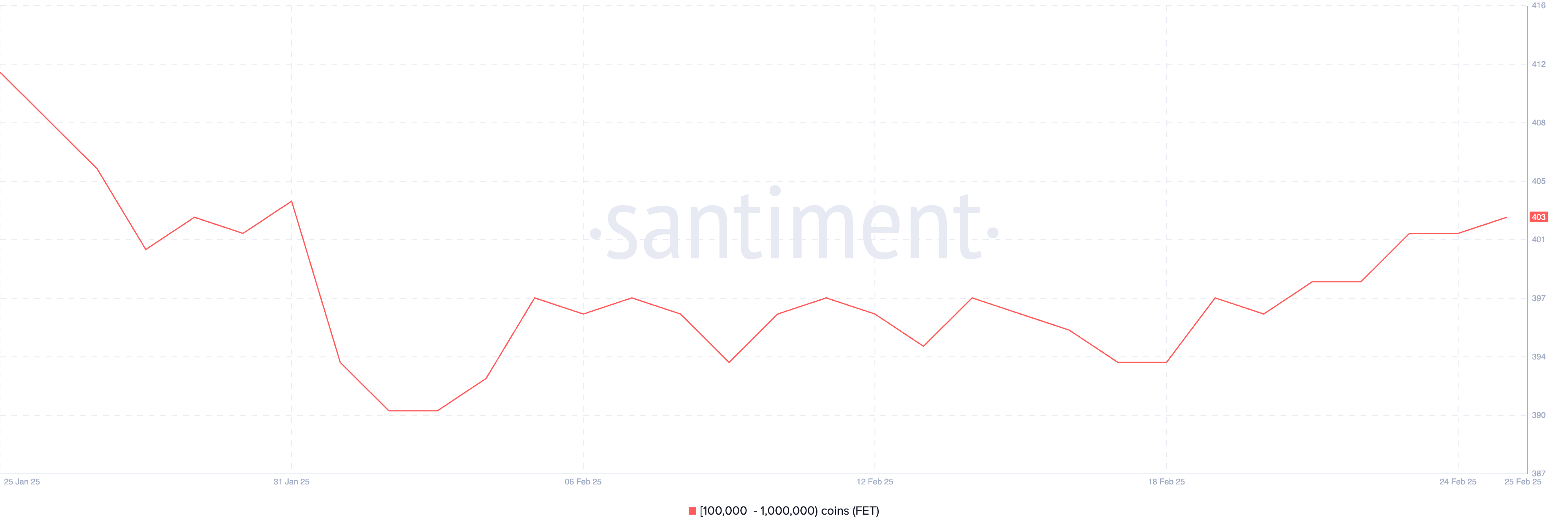 100 000 және 1 000 000 FET арасында ұстайтын мекенжайлар саны 18 ақпанда 394-тен 25 ақпанда 403-ке дейін өсті, бұл — 31 қаңтардан бергі ең жоғары деңгейі.