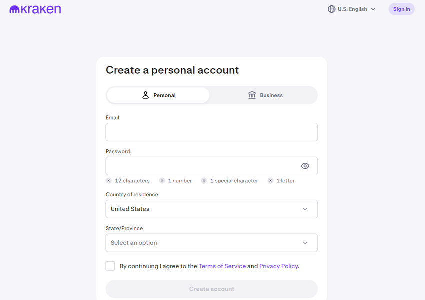 1. Kraken-де есептік жазба жасаңыз