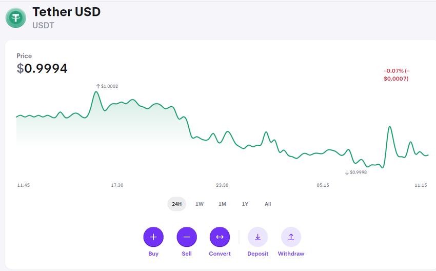 ➤ Tether (USDT) АҚШ долларына байланған стейблкоин болып табылады. Оның құны нарықтағы құбылмалылыққа қарамастан, әдетте әрқашан 1 долларға жақын болады.