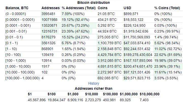 Мұнда әмиян мекенжайлары бізге биткоинның жалпы таралуы туралы тек жалпы шолу бере алатынын атап өту керек. Биткоин желісі қамтамасыз ететін салыстырмалы анонимділікке байланысты, әмиян мекенжайлары бір ғана әмиянды нақты адамға немесе ұйымға байланыстыру үшін әрдайым жеткілікті болмауы мүмкін.