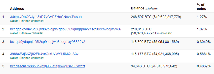 Бұған дейін айтылғандай, ең ірі BTC иелерін анықтау оңай емес.