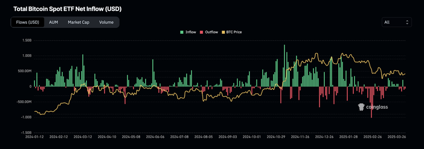 Алтын бағасының өсуі мен Bitcoin бағасының тұрақты немесе жоғары болуы – инвесторлар екі активті де қауіпсіз айлақ ретінде таңдауы мүмкін екенінің белгісі. - Дәстүрлі нарықтар қолайсыз болған кезде де спот Bitcoin ETF-теріне кірістер.