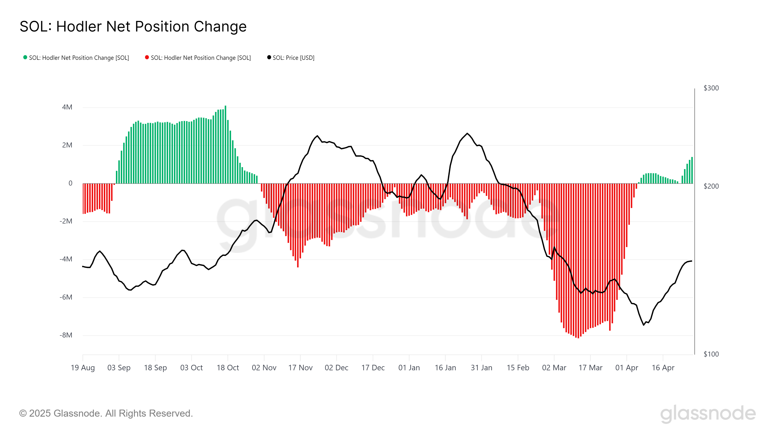Осылайша, Solana-ның макро импульсі де жақсару белгілерін көрсетуде, себебі HODLer таза позиция өзгерісі жақында күрт өсті. Бұл өсу ұзақ мерзімді иелердің (LTH) жинақталуының артуын көрсетеді, бұл активке деген сенімнің артуын білдіреді. LTH жинақталуы Solana-ның ұзақ мерзімді баға өсуіне деген сенімді білдіреді, және альткоин осы жалғасып жатқан жинақталудан пайда көруі ықтимал.
