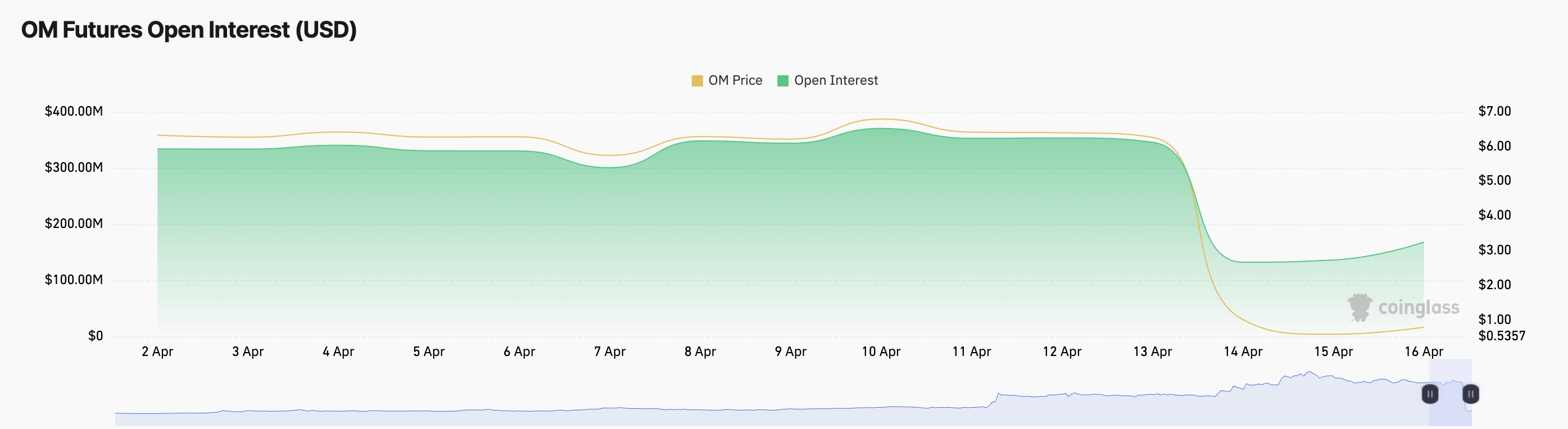 Тарихи баға құлдырауынан кейін, Mantra-ның OM таңғажайып қалпына келуде. Альткоин 13 сәуір күні 90%-дан астамға құлдырап, 6,30 доллардан бірнеше сағат ішінде 0,50 доллардан төмен түсті.