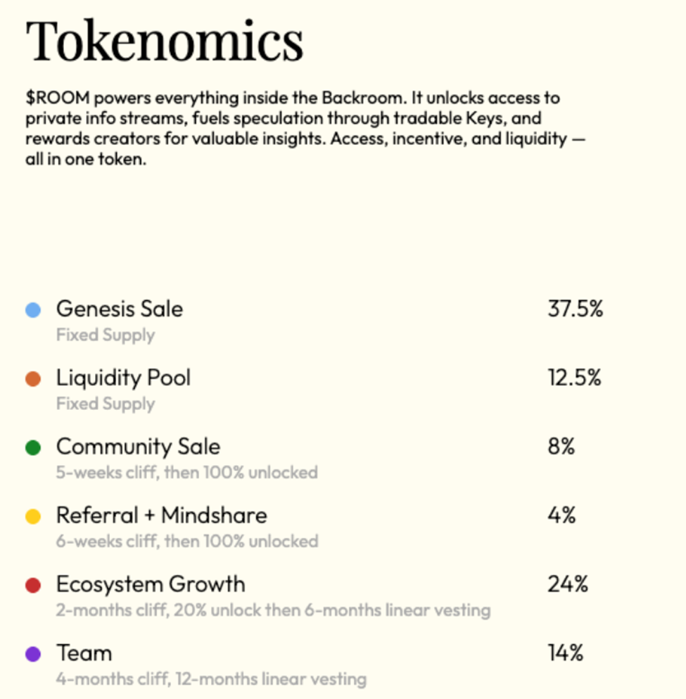 Назар аудару экономикасына негізделген Backroom-ның ROOM деректерді монетизациялауды демократияландыруды мақсат етіп, орталықтандырылған KOL модельдеріне қарсы тұрады.