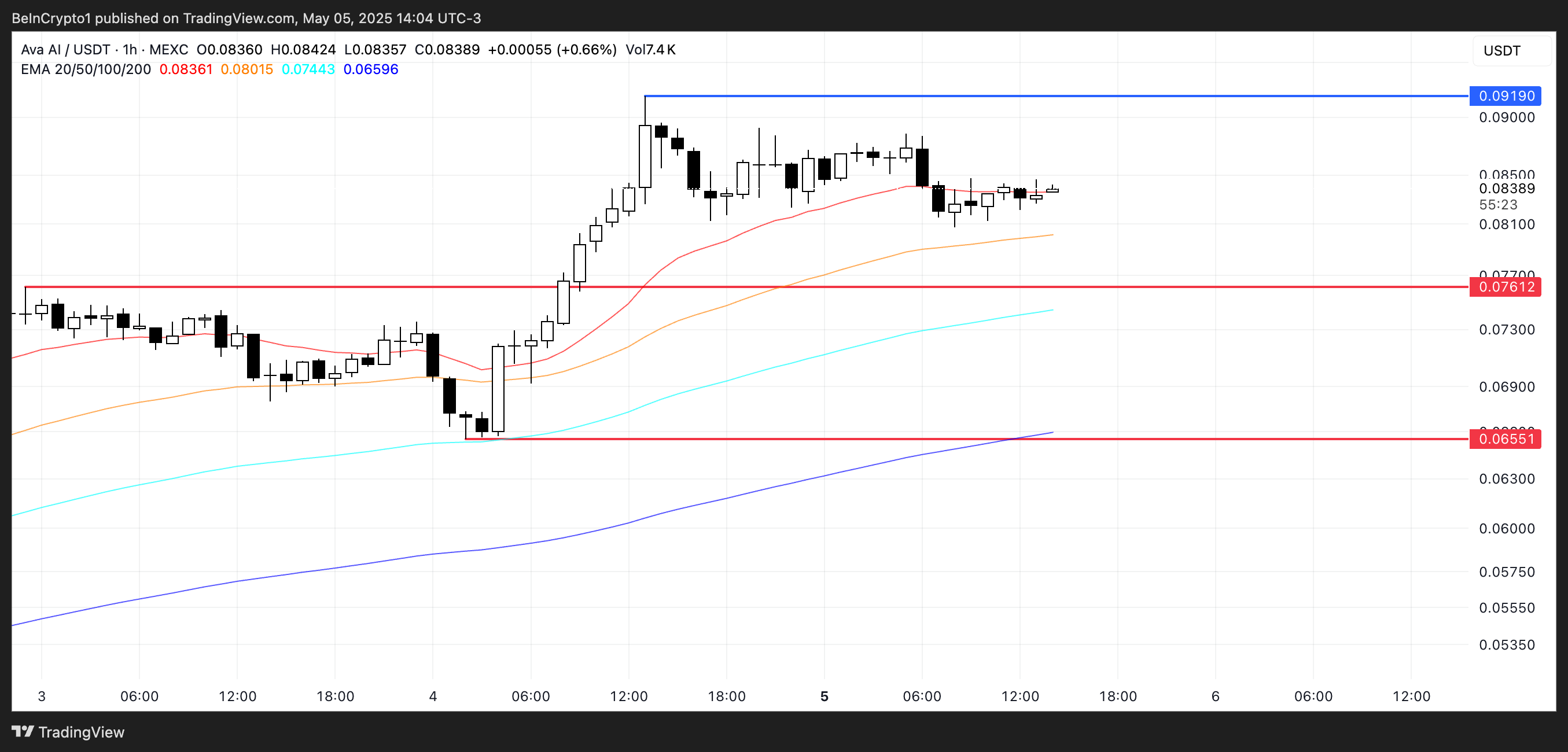 Егер AVA өткен аптадағы импульсін қалпына келтірсе, ол 0,0919 долларға қарсыласуды сынау үшін жоғары көтерілуі мүмкін.