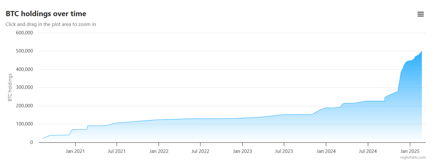 16 наурыздағы жағдай бойынша, MicroStrategy 499 226 BTC иеленеді, шамамен 33,1 млрд доллар тұрады. Компанияның жалпы орташа Bitcoin құны шамамен 66 000 долларды құрайды.