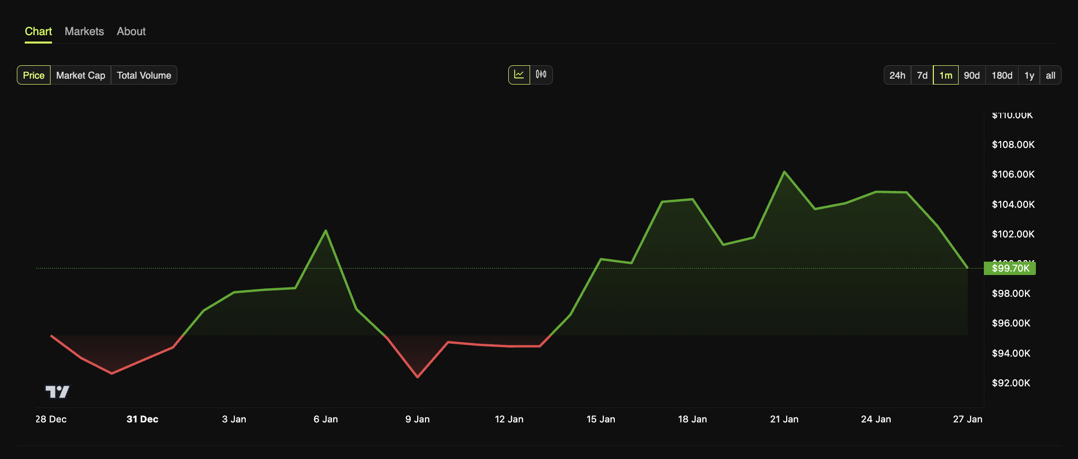 Бүгінгі сатып алуға қарамастан, компанияның акциялары да бүгінгі кеңірек сатылымнан, DeepSeek AI мәселелерінен туындаған әсерге ұшырады. MSTR бүгін шамамен 5% төмендеді, бірақ осы айда 14% жоғары болып қалды.