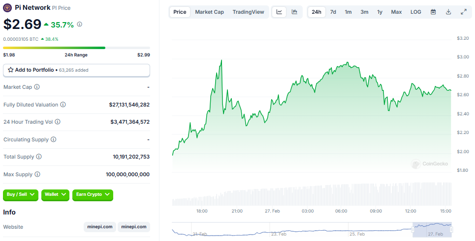 Pi-дің хабарланған 3,5 млрд доллар күнделікті сауда көлемінің едәуір бөлігі OKX, Bitget және Gate.io сияқты биржаларда шоғырланған. Дедик бұл көлемнің негізінен Pi Network-тегі жуу саудасының нәтижесі екенін ұсынады. Жуу саудасы – трейдерлердің бір активті сатып алып, сатуы арқылы жалған нарықтық белсенділік жасауға бағытталған манипуляциялық тәжірибе.
