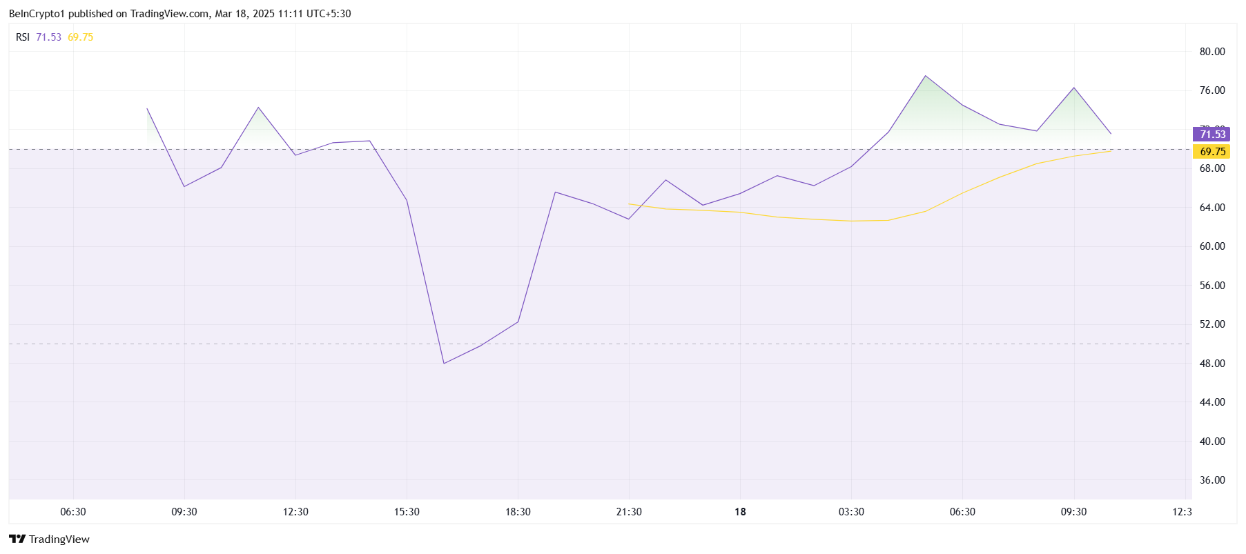 Іске қосылғаннан бері MUBARAK тұрақты түрде бұқа импульсін бастан кешірді, бұл Салыстырмалы күш индексімен (RSI) көрсетілген. Қазіргі уақытта коин артық сатып алынған аймақта, бұл әдетте көңіл-күйге байланысты баға өсімін бастан кешіріп жатқан активтер үшін тән жағдай.