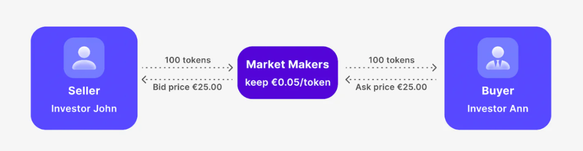 Нарық жасаушылар үздіксіз сатып алу және сату тапсырыстарын орналастырады, трейдерлердің мәмілелерді айтарлықтай баға ауытқуларынсыз орындауын қамтамасыз етеді. Нарық жасаушыларсыз өтімділік төмен болар еді, айырмашылықтар кеңейер еді және баға сырғуы күштірек болар еді, бұл сауданы қауіпті етеді.