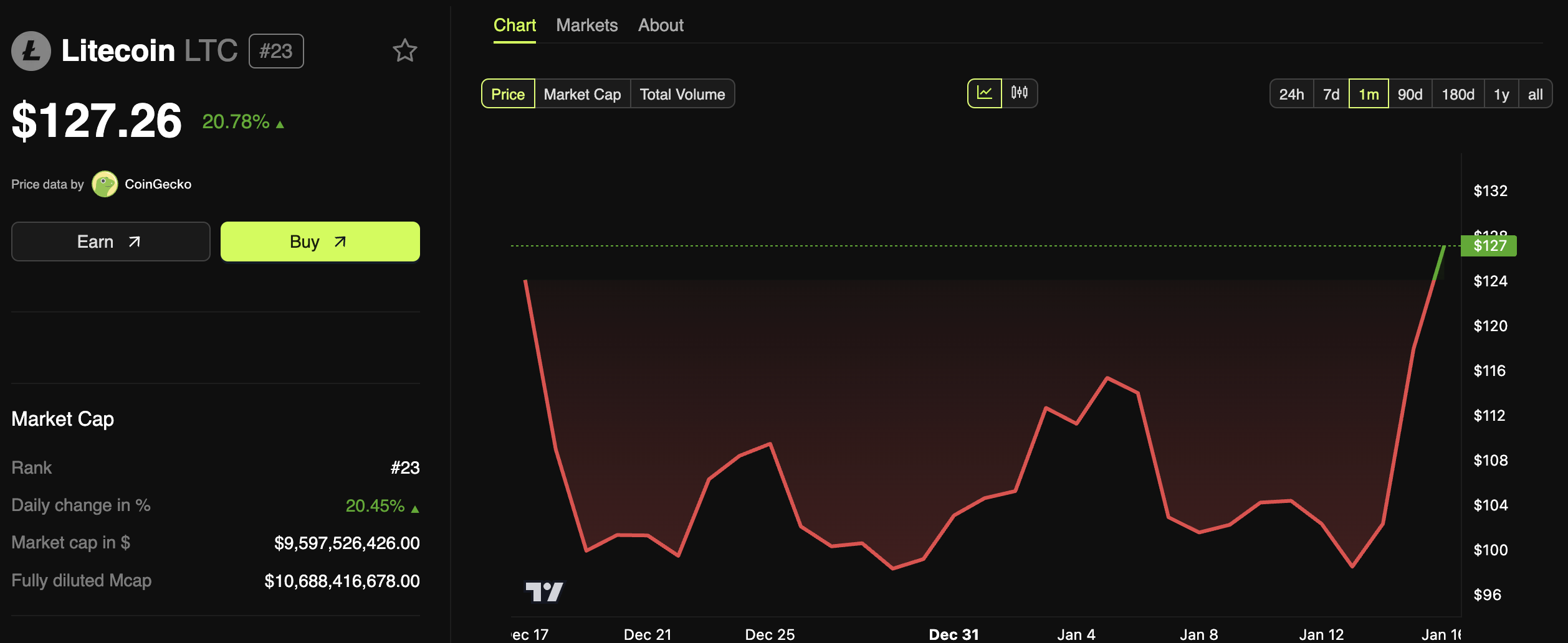 Дегенмен, бұл сыбыстар қазірдің өзінде айтарлықтай баға секірістерін және киттердің қызығушылығын тудырды. Қысқаша айтқанда, Canary үлкен жеңіске жетуі мүмкін. Ол тек SEC-тен бірнеше қадамды күтіп, жаңа нарықты бастау керек. Егер мақұлданса, LTC АҚШ нарығында ETF-ке ие болатын үшінші криптовалютаға айналады.