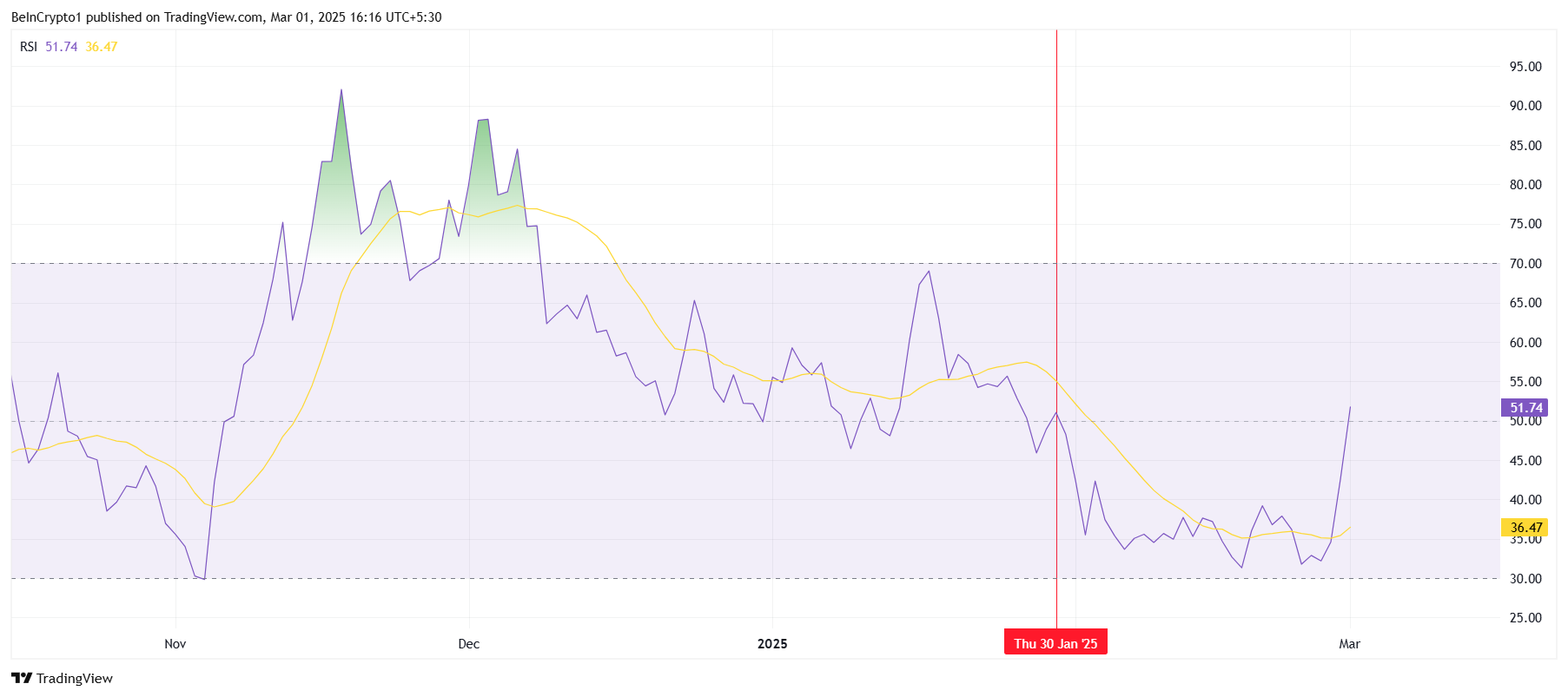 Бұл токен үшін үлкен жетістік болып табылады, өйткені бұл бұқа импульсінің енді күшейіп келе жатқанын көрсетеді. RSI соңғы төмендеудің аяқталғанын және альткоиннің кеңірек нарықтық жағдайлар жақсарған сайын жоғары қарай қозғалуын жалғастыра алатынын болжайды.