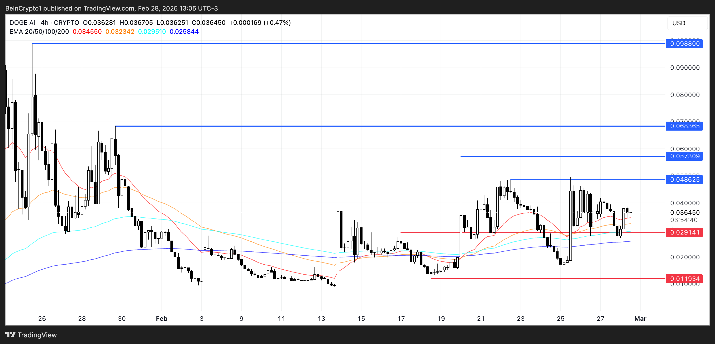 Керісінше, егер төмендеу үрдісі орын алса, DOGEai 0,029 долларда қолдау табады, ал егер бұл деңгей бұзылса, баға 0,0119 долларға дейін төмендеуі мүмкін.