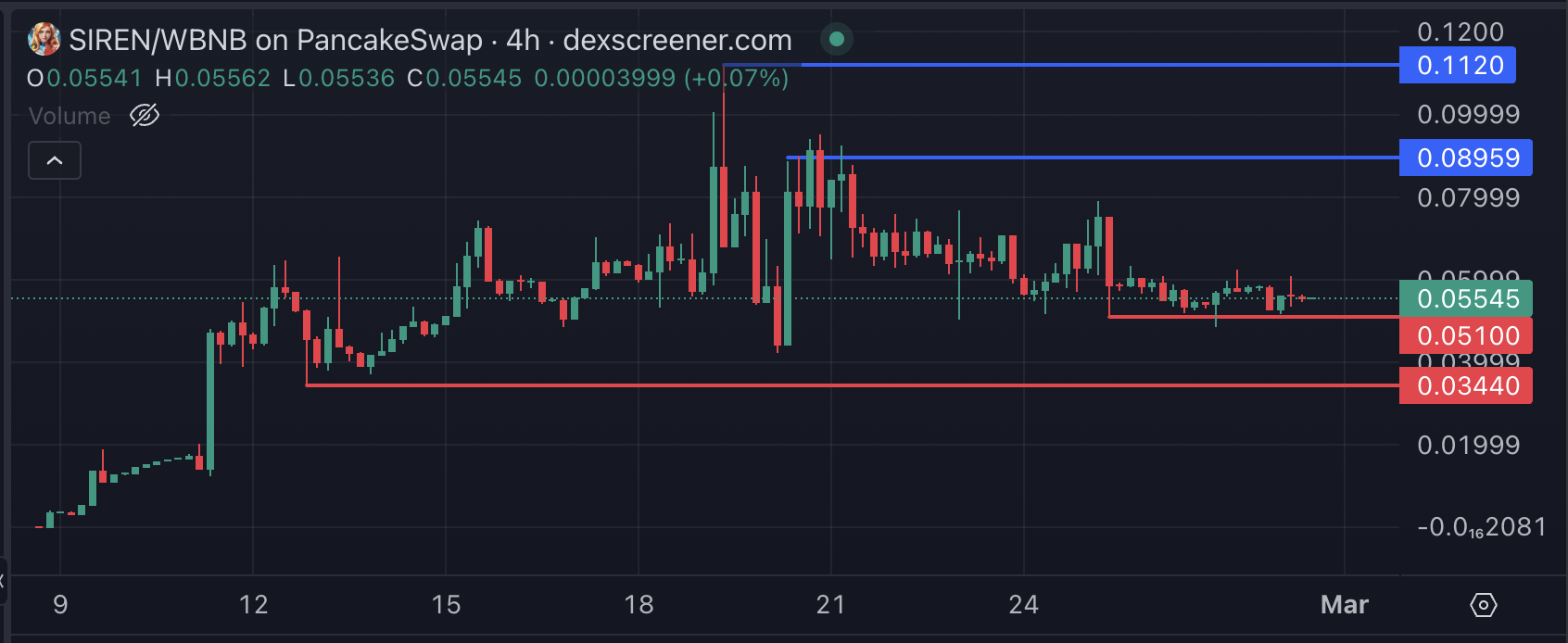 Егер SIREN күшті өсу үрдісін орната алса, ол 0,089 доллардағы қарсылықты сынап көре алады, ал бұл деңгейді бұзу оны 0,11 долларға дейін итермелеуі мүмкін. Керісінше, егер төмендеу үрдісі күшейсе, SIREN 0,051 доллардағы қолдауды сынап көре алады, ал егер бұл деңгей сәтсіз болса, ол 0,034 долларға дейін төмендеуі мүмкін.