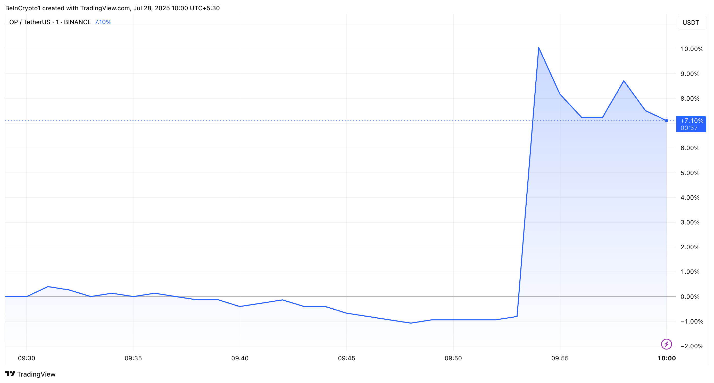 Сонымен қатар, нарық бақылаушылары OP-тің болашағына өте оптимистік қарайды. X (бұрынғы Twitter) желісіндегі соңғы жазбасында сарапшы Дэниел Рэмси апталық уақыт аралығында төмендейтін сына үлгісінен бағаның бұзылғанын байқады.