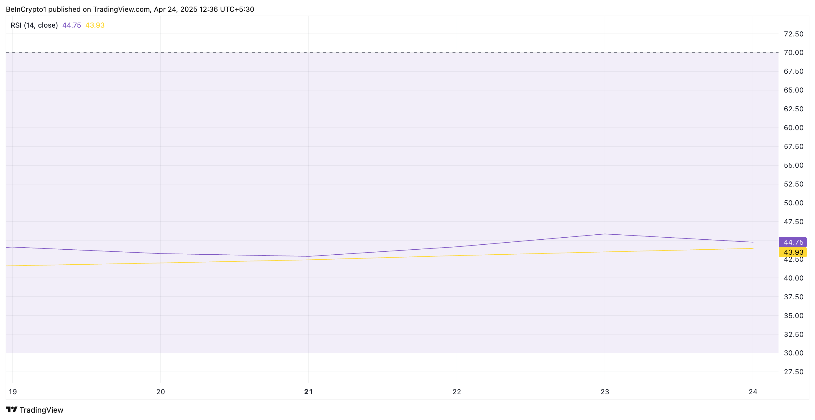 EMA активтің ағымдағы бағасынан жоғары орналасқанда, бұл қысқа мерзімді төмендеу трендін білдіреді, соңғы бағалар соңғы 20 күннің орташа мәнінен төмен екенін көрсетеді. Егер сұраныс одан әрі төмендесе, PI шығындарын ұлғайтып, 0,40 доллар тарихи минимумына қайта оралуы ықтимал.