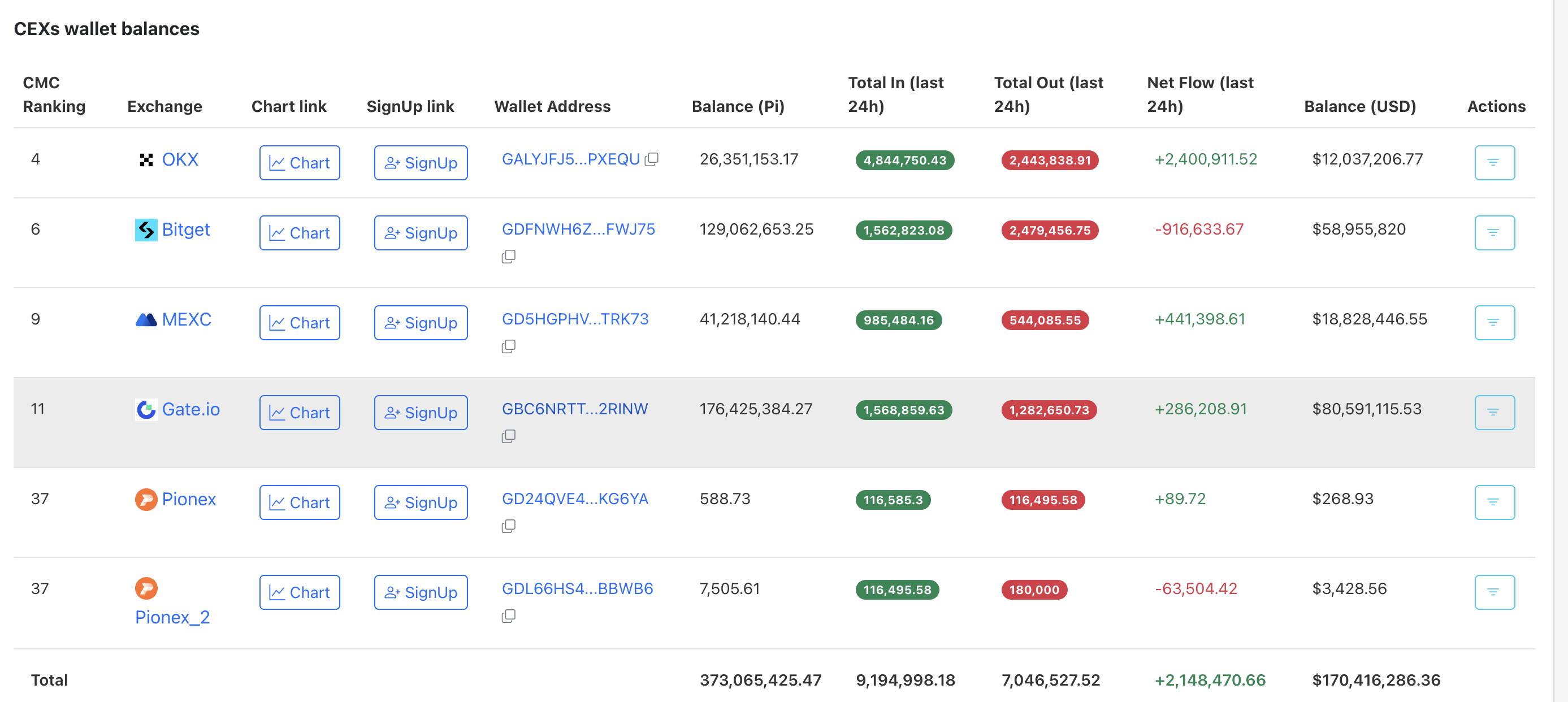 Соңғы кесте негізгі CEX-тердегі таза кірістердің шығыстардан асып түсетінін көрсетеді. Бұл бұқалар үшін ескерту белгісі.