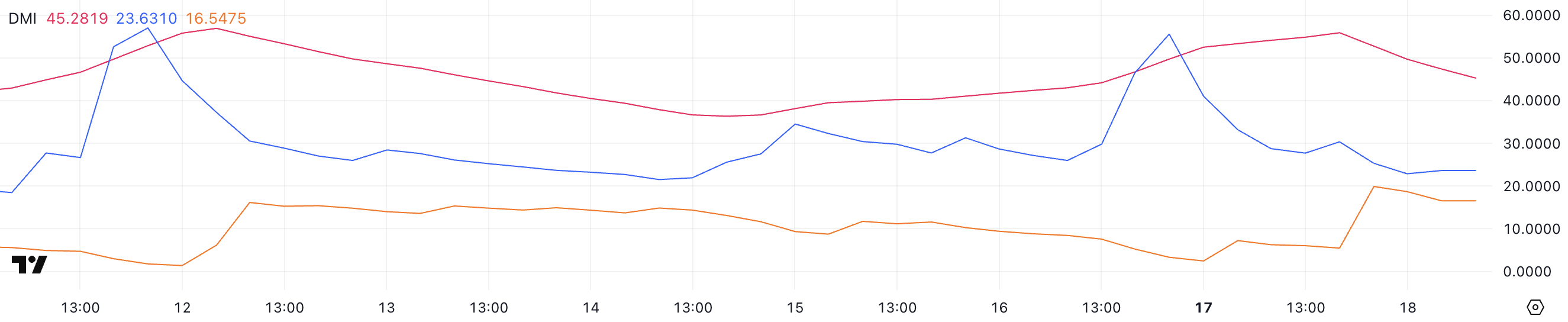 Pi Network ресми іске қосылуына дейін үлкен қызығушылық тудырып отыр, оның іздеу қызығушылығы жаңа шыңдарға жетуде. Техникалық тұрғыдан алғанда, PI үшін оның DMI графигі ADX-тің 45,2-де екенін көрсетеді, бұл кеше 55,8-ден төмендеген. ADX (орташа бағыттық индекс) тренд күшін өлшейді, 25-тен жоғары мәндер күшті трендті, ал 20-дан төмен мәндер әлсіздікті білдіреді.
