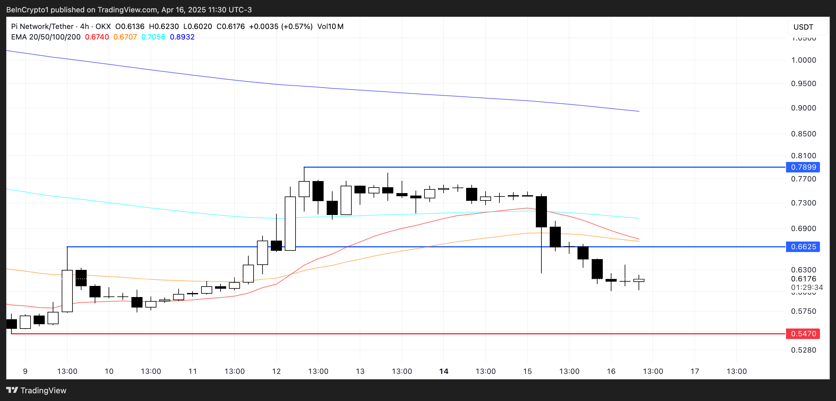 EMA сызықтары да ықтимал “өлім кресті” туралы ескертіп, одан әрі шығындарға әкелуі мүмкін. Міне, графиктер PI үшін жақын арада не көрсетіп тұрғанын талдау.