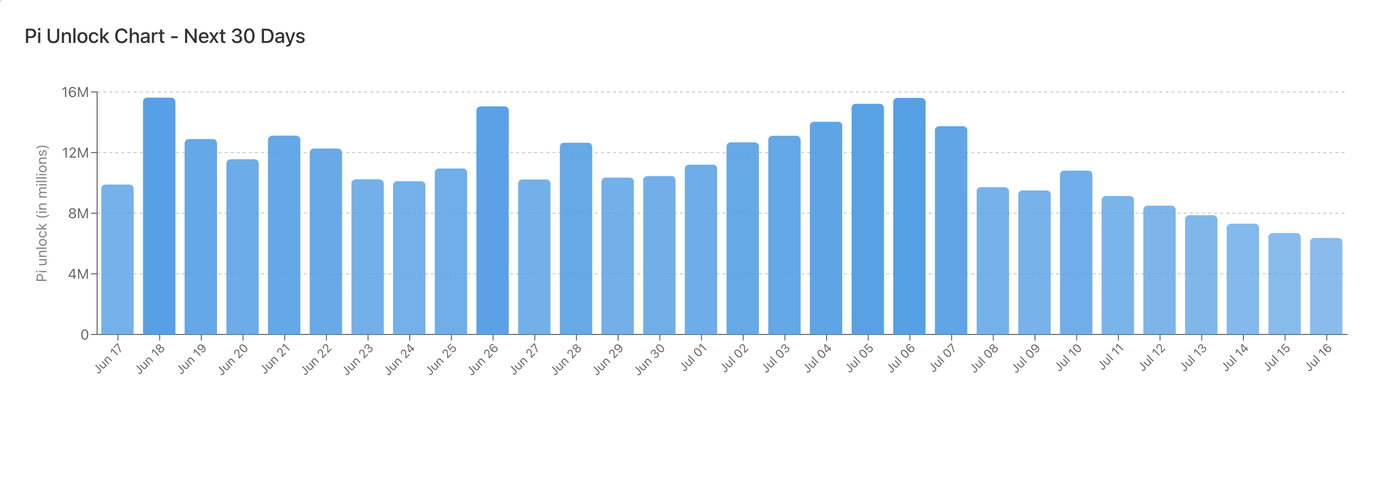 PI-дің өсіп келе жатқан ашылу кестесі жақын арада бағаның айтарлықтай қалпына келуіне деген үмітке үлкен қауіп төндіреді. Алдағы 30 күнде ғана PiScan мәліметтері бойынша шамамен 185 млн долларға бағаланған 337 млн PI токендері айналымға шығарылады.