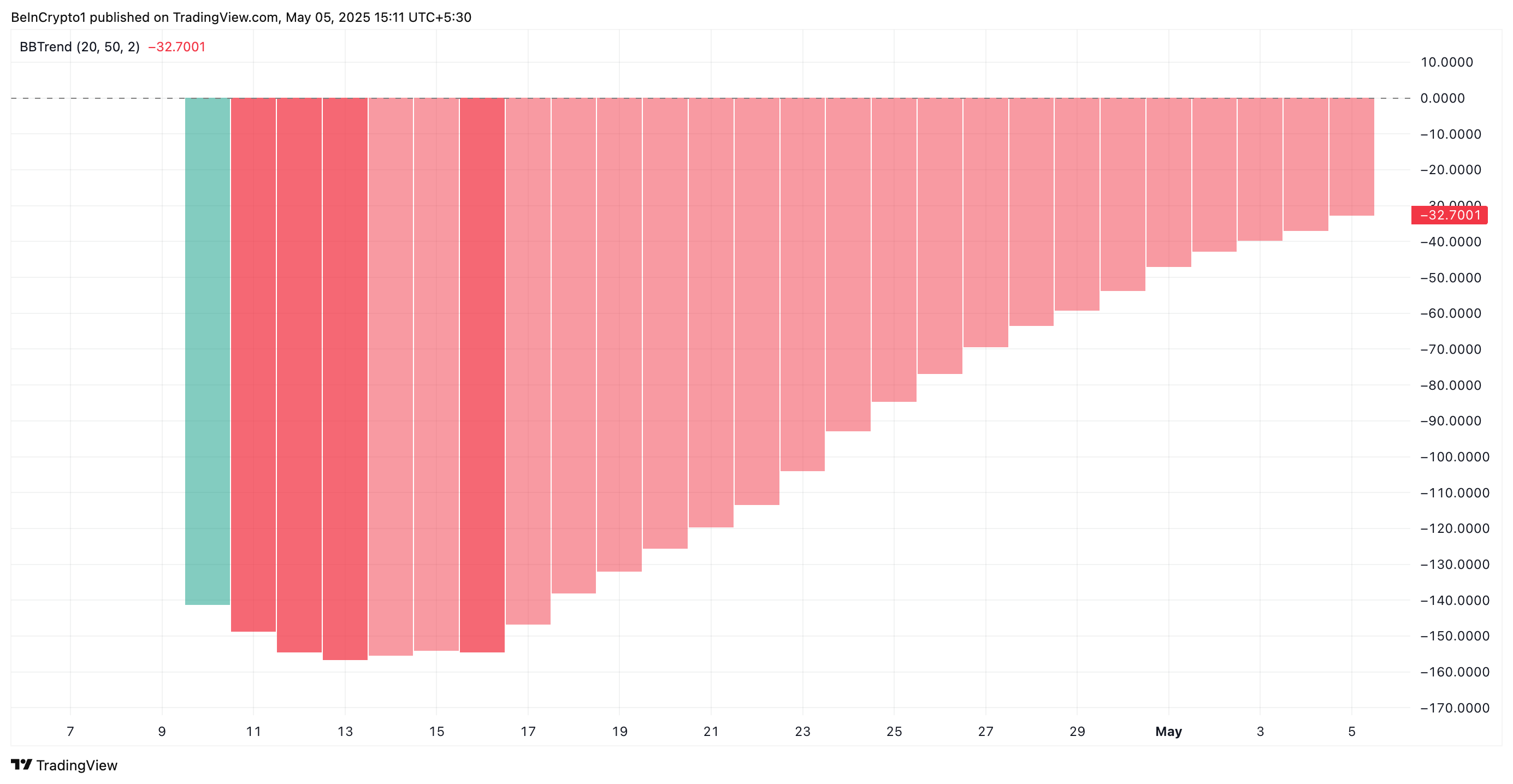 Техникалық талдауда, BBTrend гистограммасының қысқаруы, әсіресе көлемнің өсуі және басқа бұқа индикаторларымен бірге болғанда, ықтимал трендтің өзгеруінің алдын ала белгісі болып табылады.