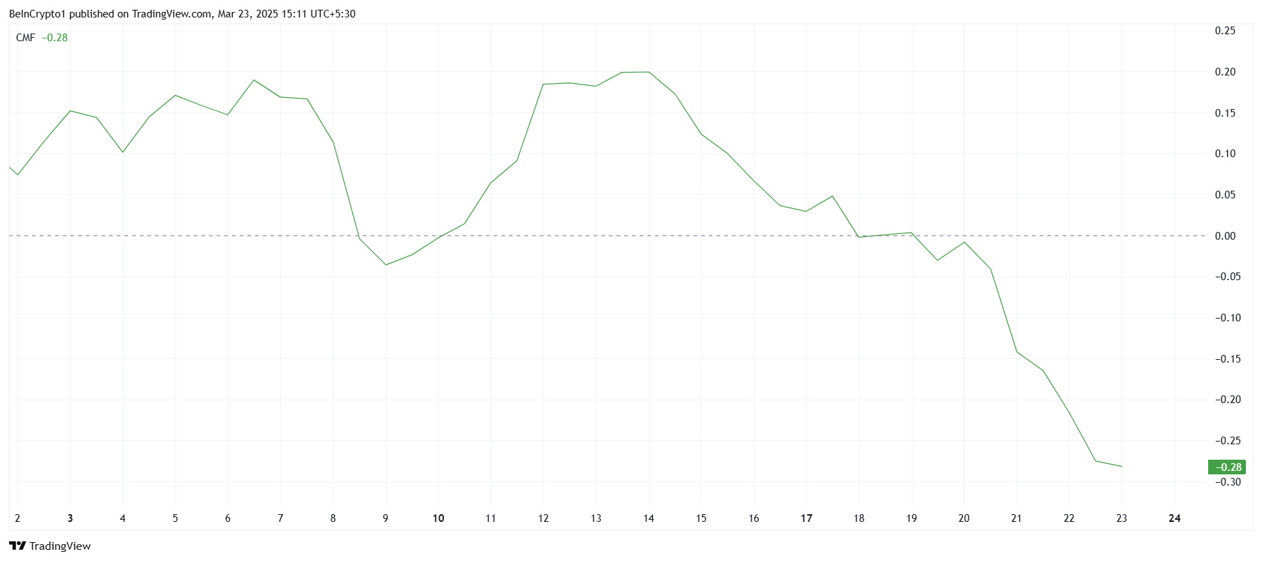 Pi Network үшін Chaikin Money Flow (CMF) жобаның басталуынан бері ең төменгі деңгейде тұр. Бұл альткоиннен шығулардың тарихи максимумға жеткенін көрсетеді, бұл инвесторлардың сенімсіздігін білдіреді.