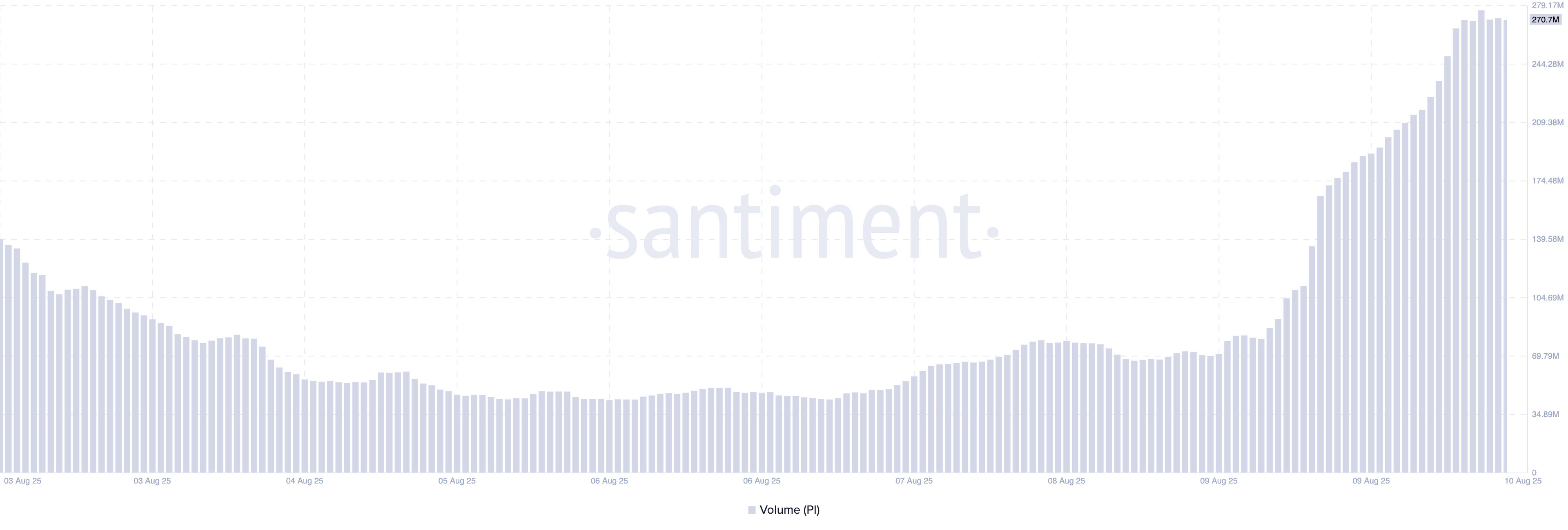PI үшін көлемнің өсуі оң импульсті күшейтіп, жақын арада раллидің жалғасуы мүмкін екенін көрсетеді.