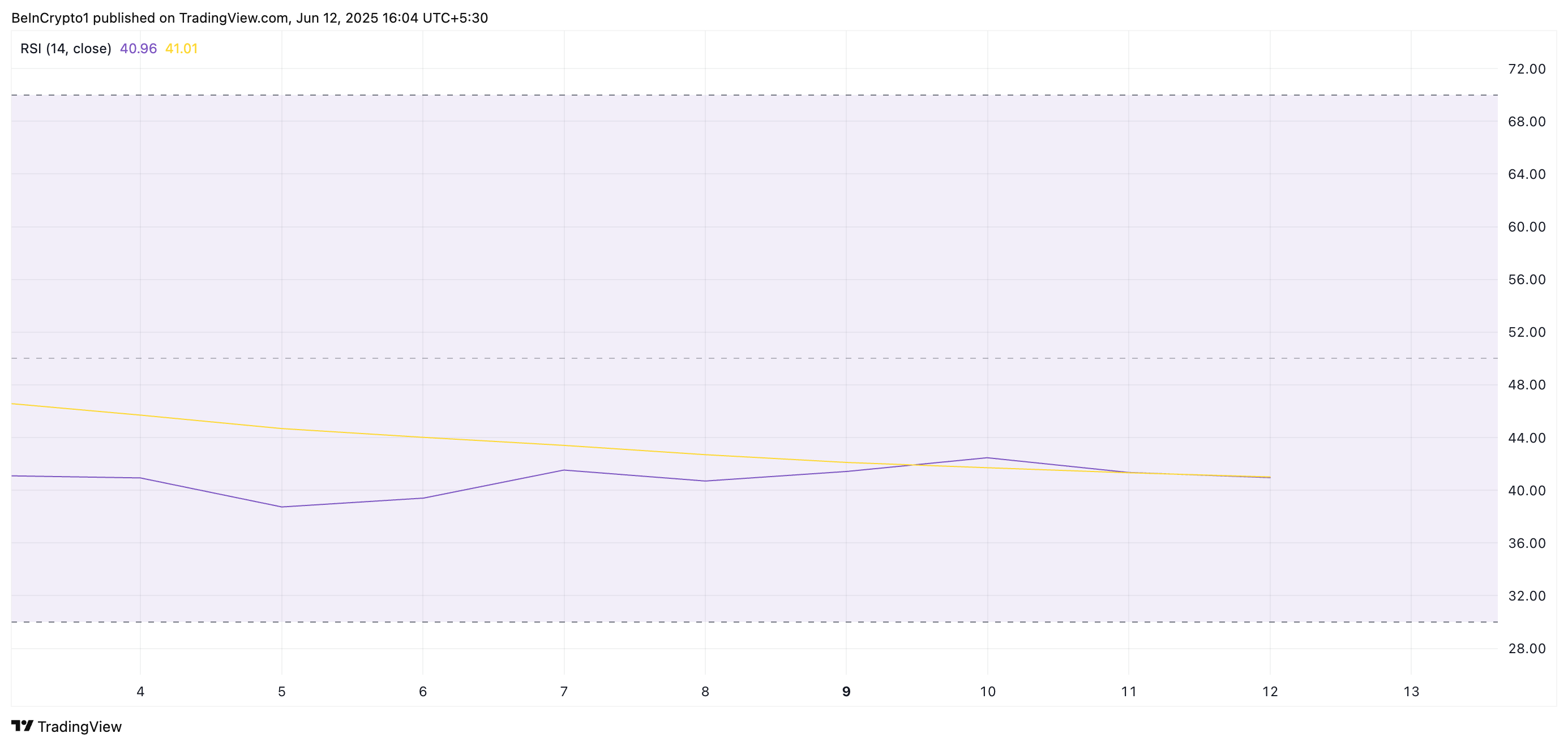 Мысалы, PI-дің Салыстырмалы күш индексі (RSI) шамамен бір апта бойы тұрақты болып қалды, бұл нарықтағы импульстің жоқтығын көрсетеді. Жазу кезінде бұл импульс индикаторы 40,96 деңгейінде тұр.